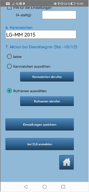 Die App (ab V 60) bietet die einzigartige Möglichkeit, sich einen der in ELS hinterlegten Rufnamen auszuwählen.