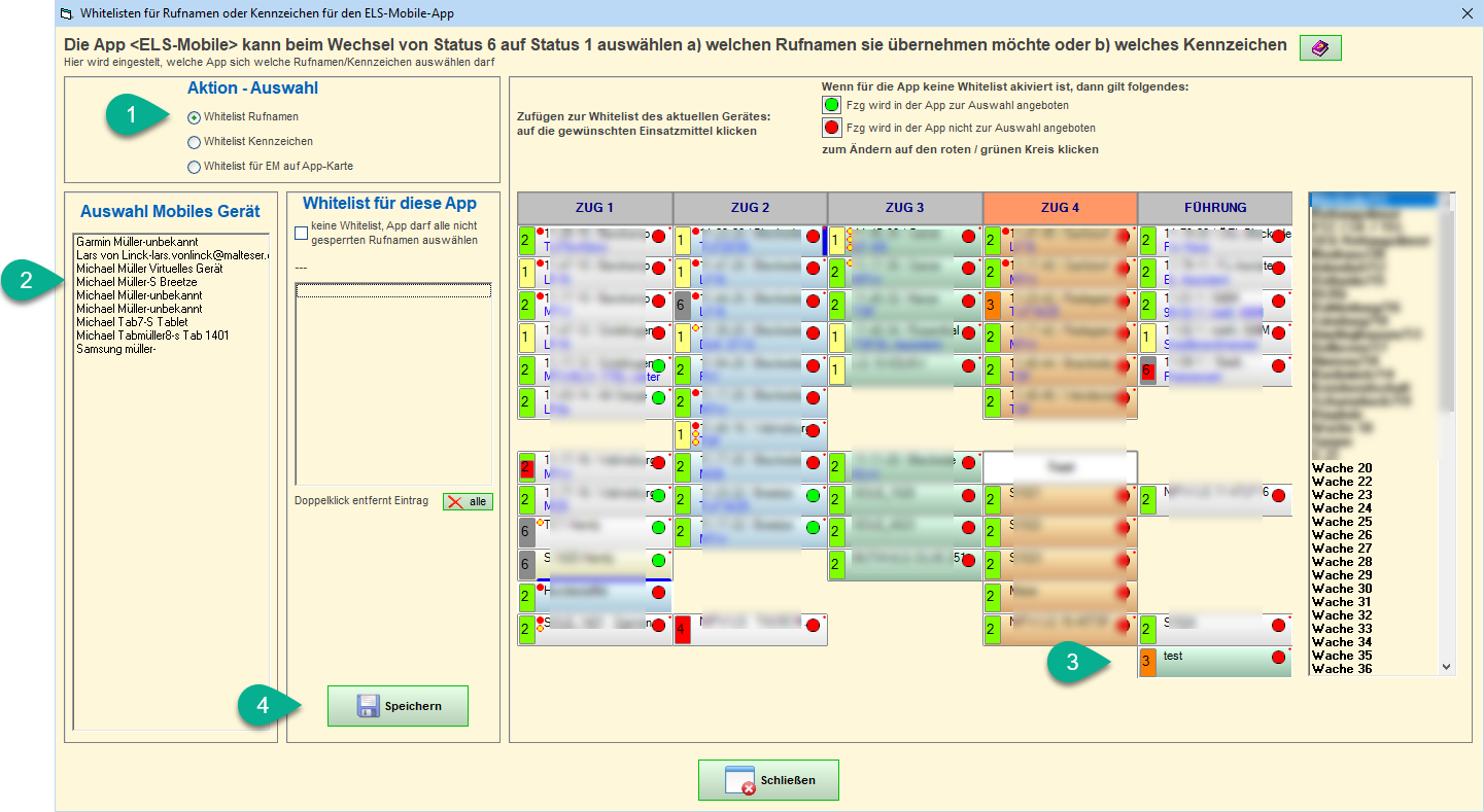- dann in der Einsatzmittelübersicht jeden Rufnamen anklicken, den dieses Gerät (App) später auswählen darf