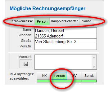 Jetzt kann eine Rechnung erstellt werden. Beim Patienten ausgefüllte Felder werden hier übernommen.