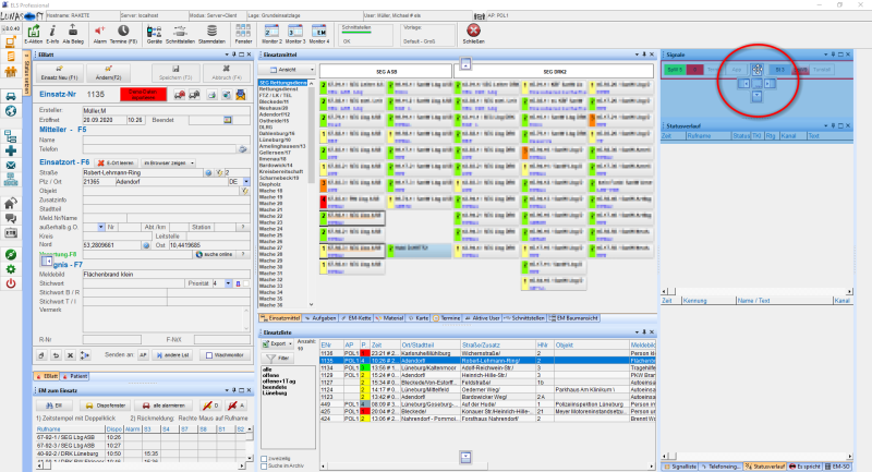 Wenn ein Fenster (hier am Beispiel: Einsatzabschnitte) über das rechte "x" geschlossen wird, kann es erneut gestartet werden.
