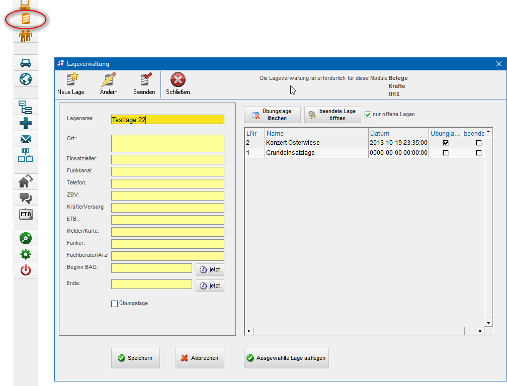 in der Lageverwaltung eine neue Lage zu eröffnen und das Modul Kräfteverwaltung zu verwenden.