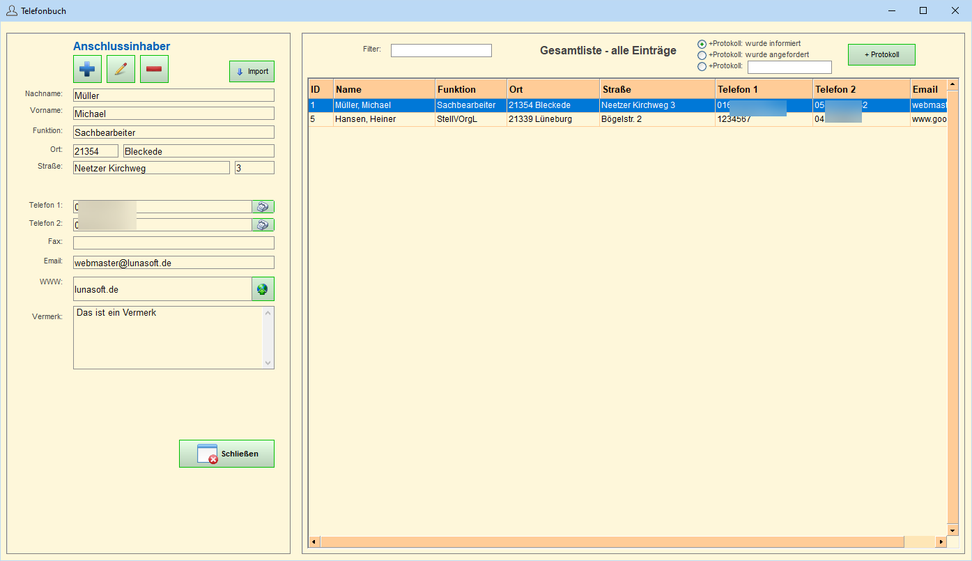 Telefonbuch Neben einer Objektdatenbank mit Objekt und Verantwortliche enthält ELS nun auch ein einfaches Telefonbuch: