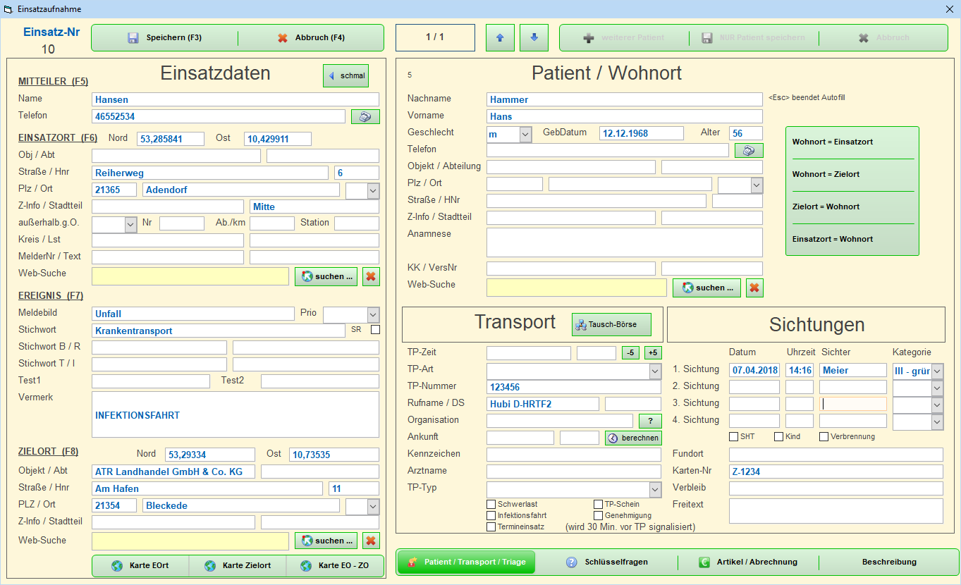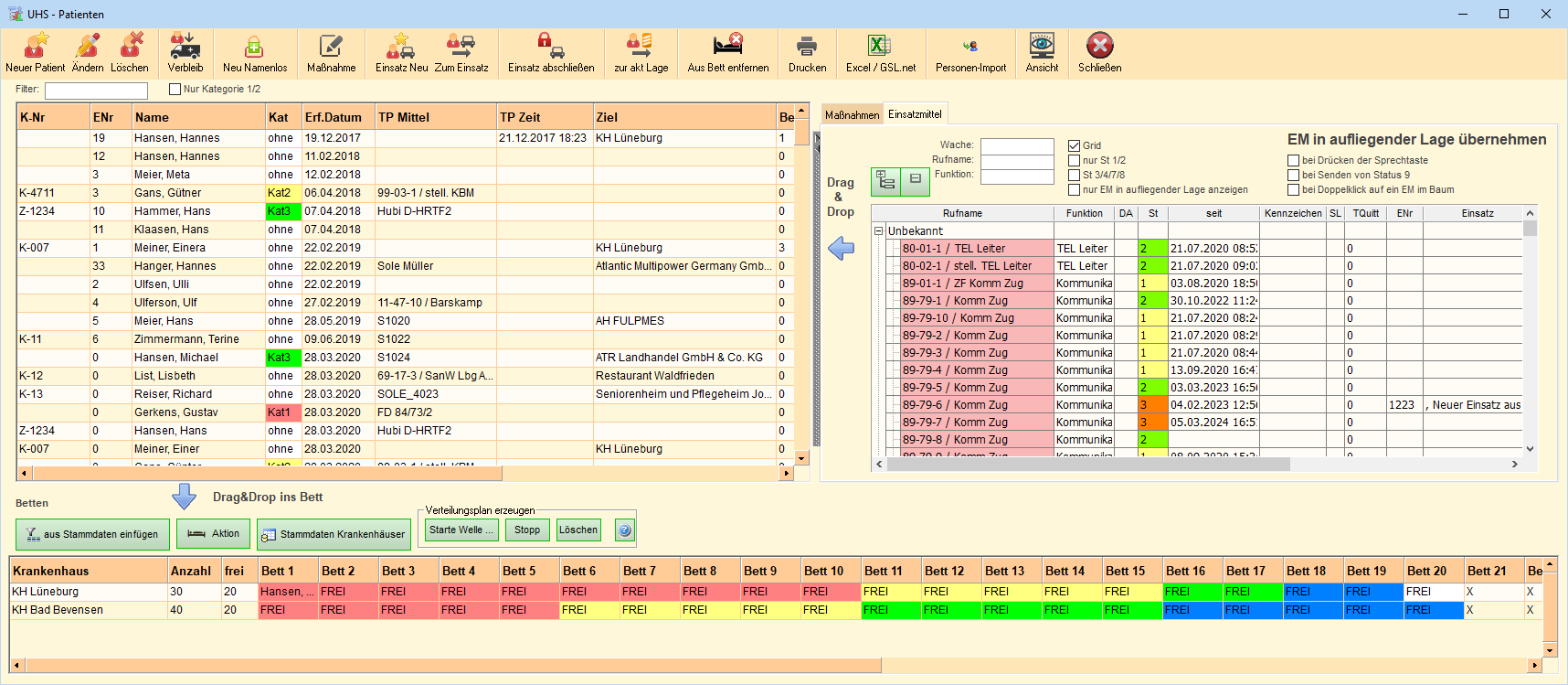 Aus dem UHS-Modul heraus können Dispo-Einsätze mit dem ausgewählten Patienten erzeugt werden.