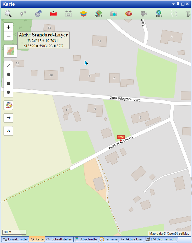 Wenn der Empfänger den Link öffnet und das Senden der Postion bestätigt, werden die Koordinaten in ELS angezeigt.