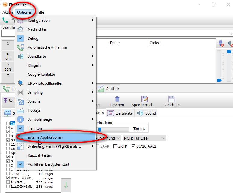 Voraussetzung: Installation der freien Software Phonerlite