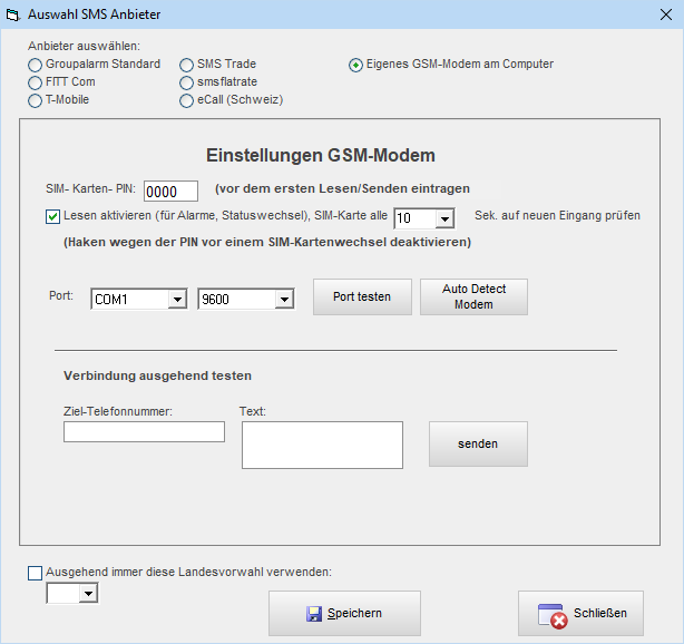 ELS-Professional unterstützt die Verwendung eines GSM-Modems am Computer.