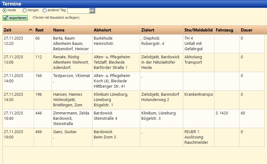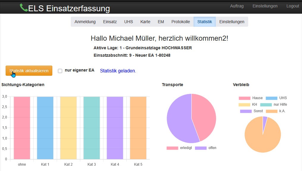 Statistikmodul zur Auswertung von Transportzahlen und des aktuellen Patientenverbleibs