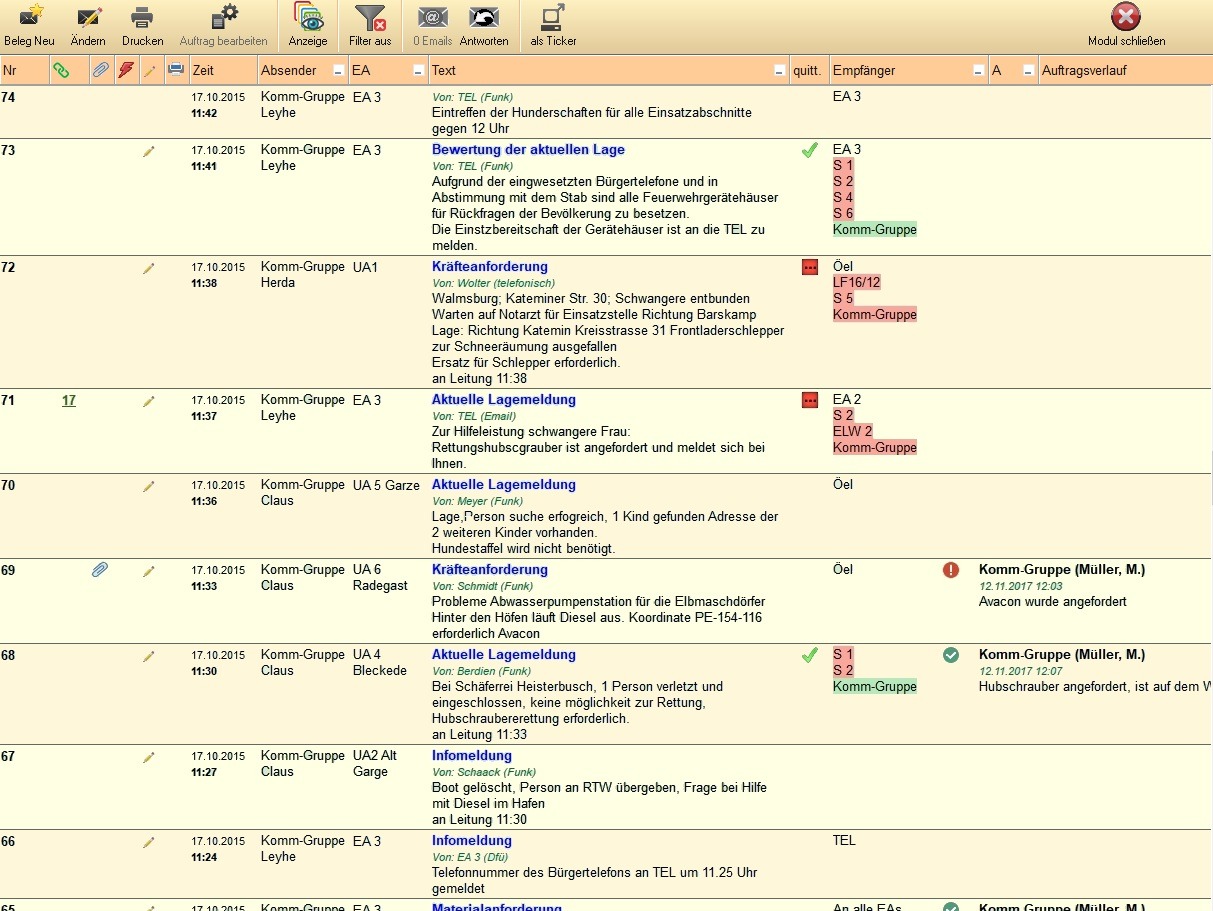 Zentrale Aufgabe der Stabsarbeit ist die Belegsteuerung. Mit diesem Modul wird den Stabsmitgliedern ein einfach zu bedienendes jedoch sehr mächtiges Werkzeug zur Verfügung gestellt.