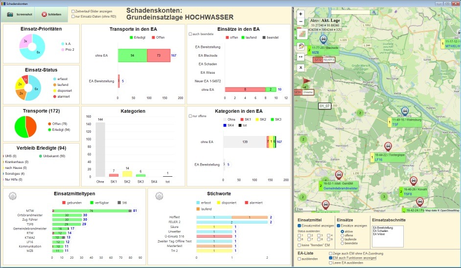 Unser Schadenskonto versorgt Einsatzleiter in größeren Einsatzlagen mit Informationen zu Einsätzen und zu Patienten-Transporten.