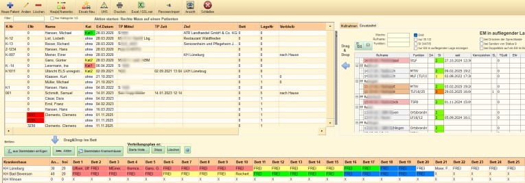 Für die anschließende Verteilung auf die Krankenhausbetten steht ein intuitiver Wellenplan zur Verfügung, in den Personen ebenfalls per Drag & Drop übernommen werden können.