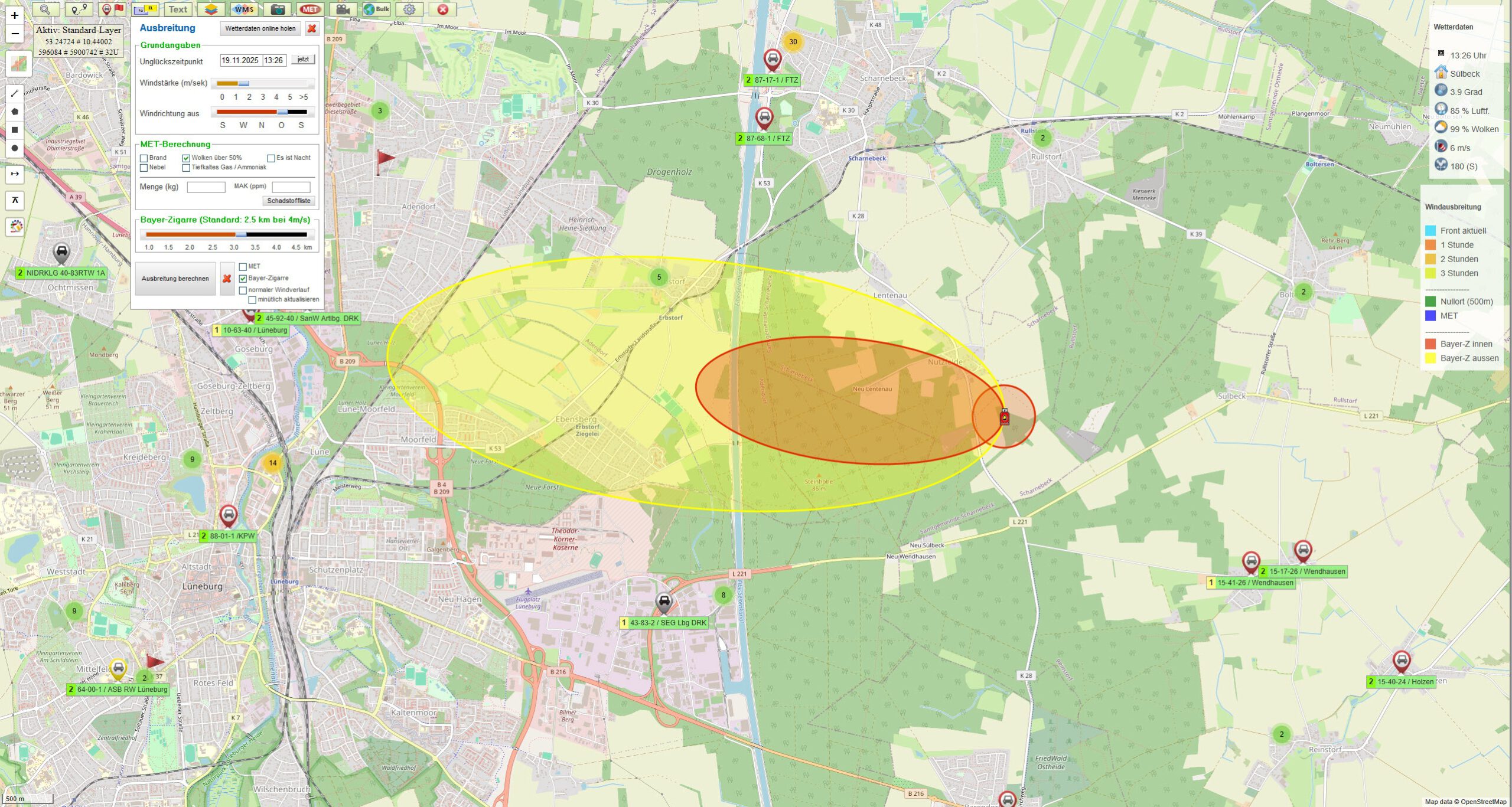 Wer "nur mal sehen" möchte, wie die Lagekarte in der Leitstelle aussieht, nutzt die ausgegliederte Lagekarte. Nahezu identische Funktionen wie in ELS-Professional.