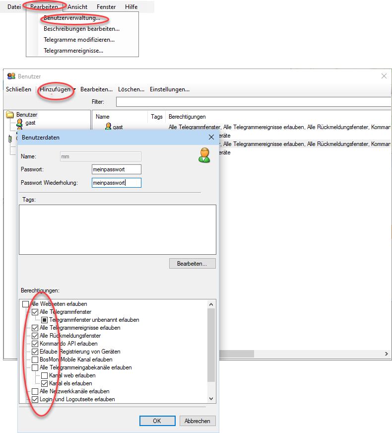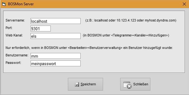 Wenn ein Benutzer in der ELS-Schnittstelle eingetragen worden ist, dann muss dieser Benutzer mit dem von Ihnen gewählten Passwort auch in BOSMON erzeugt worden sein: