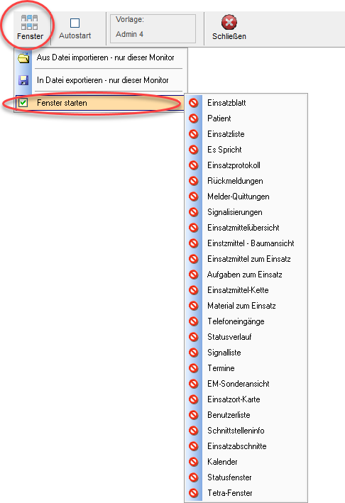 Beachte dabei, dass jedes Unterfenster, dass nun hier ausgewählt wird, aus dem bereits geöffneten ersten (Hauptfenster) herausgelöst wird, falls es dort schon lief.