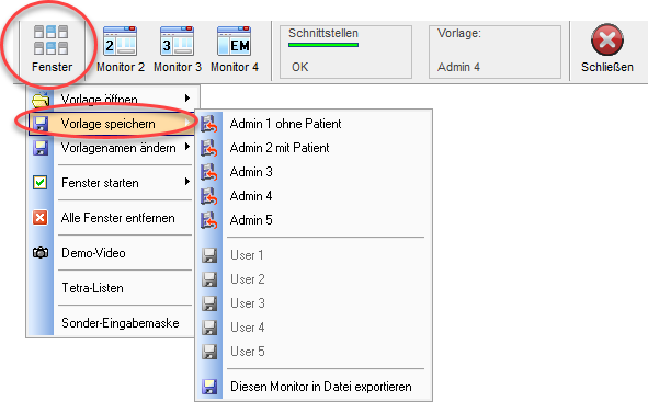 Nun muss das Fenster als Vorlage gespeichert werden: