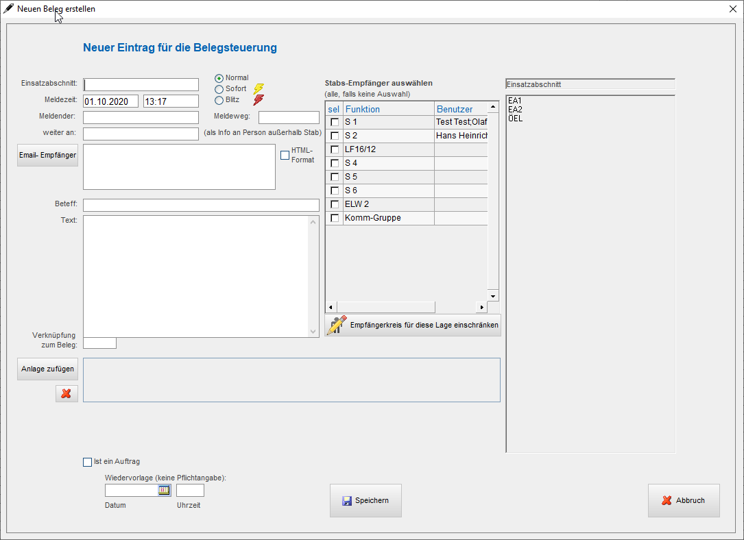 Zentrale Aufgabe der Stabsarbeit ist die Belegsteuerung. Mit diesem Modul wird den Stabsmitgliedern ein einfach zu bedienendes jedoch sehr mächtiges Werkzeug zur Verfügung gestellt.