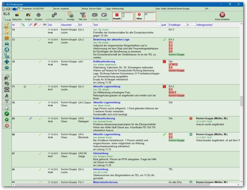 Mit ELS-Professional kann die Dokumentation auf elektronischem Wege lückenlos geführt werden. Alle erforderlichen Informationen werden zu jedem Eintrag hinterlegt: