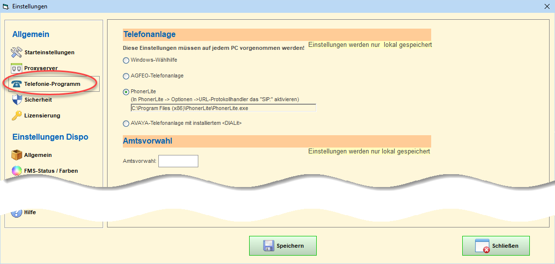 Ihr Telefonanlagen-Administrator muss in der Telefonanlage als Empfänger für eingehende Anrufe den Pfad + Dateinamen dieses Tools eintragen.
