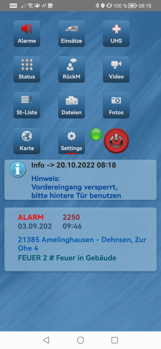 Senden der Bereitschaft/Rückmeldung nach einer Alarmierung