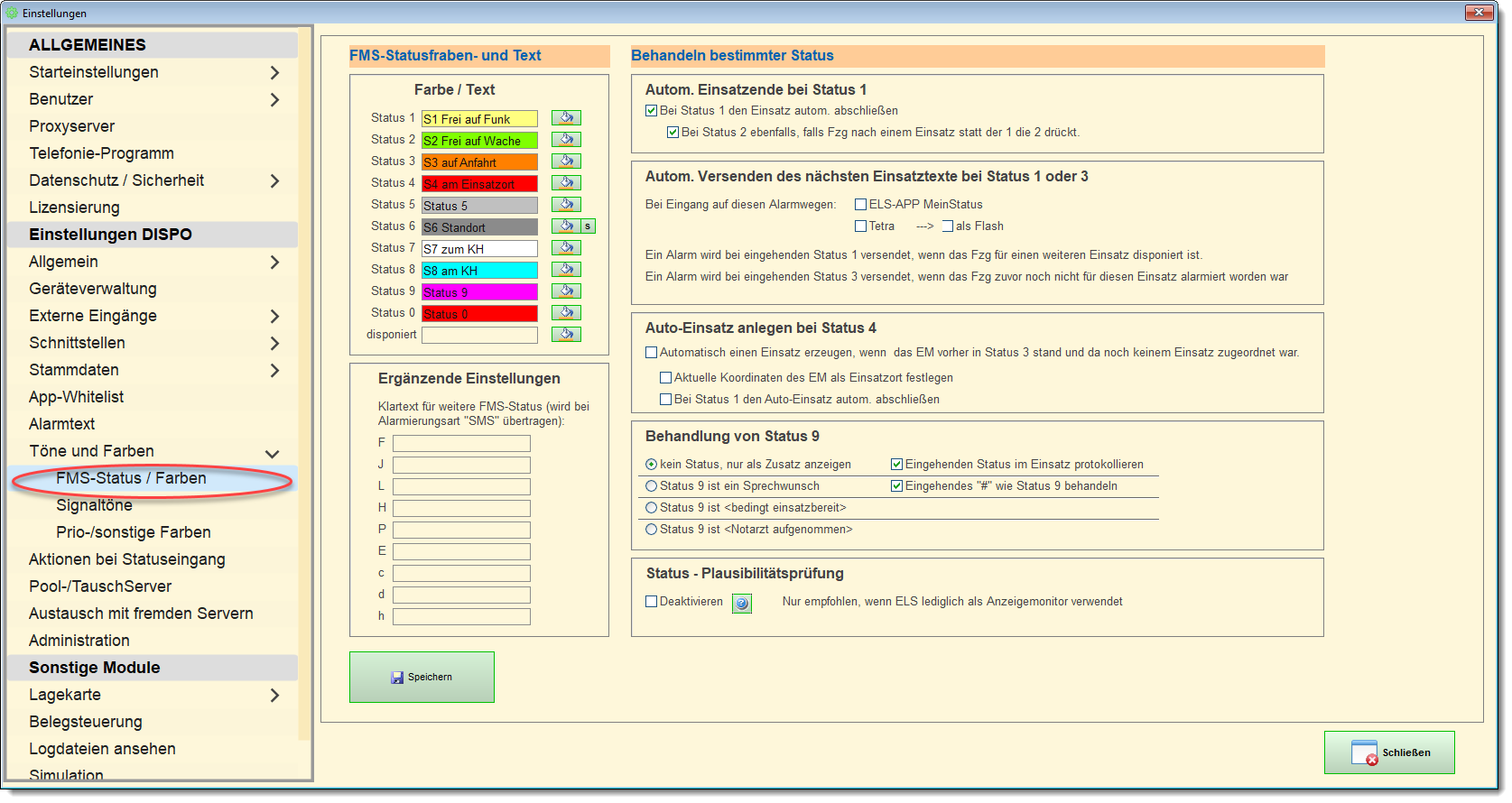 Hier die Bedeutung der FMS-Status. Sie können je nach Organisation unterschiedlich sein. ELS-Professional bietet die Möglichkeit, sich der jeweiligen Organisation anzupassen.
