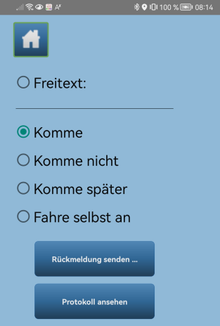 Senden der Bereitschaft/Rückmeldung nach einer Alarmierung