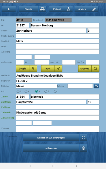 Erstellen und Senden eines neuen Einsatzes (mit Patientendaten)