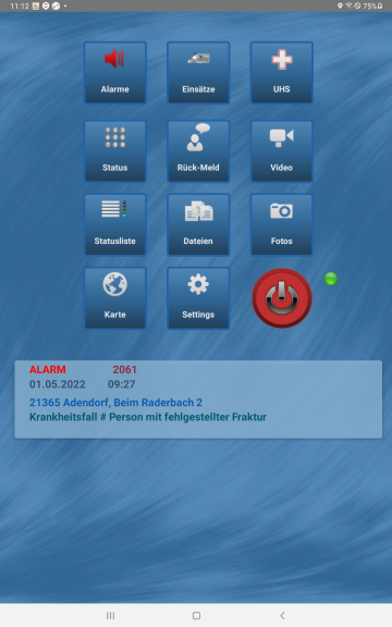 Wenn ein Alarm eintrifft (siehe unten bei EMpfangsseite), dann kann zum Einsatz eine Rückmeldung an ELS-Professional gesendet werden