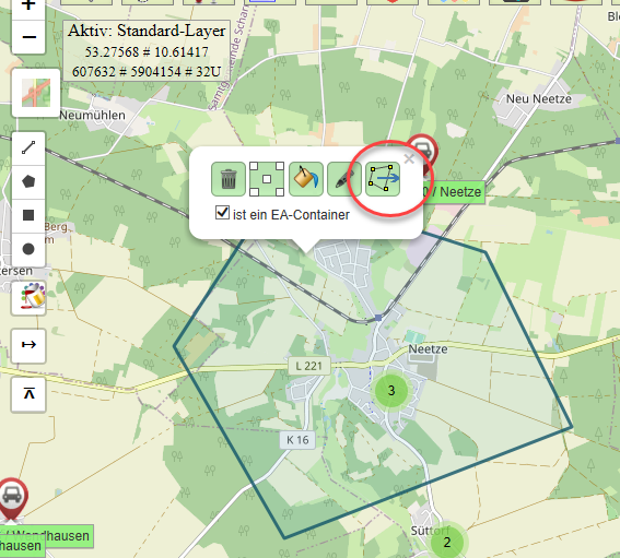 Auf dem Mobilgerät in der Karte den Flächen-Button anklicken: