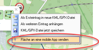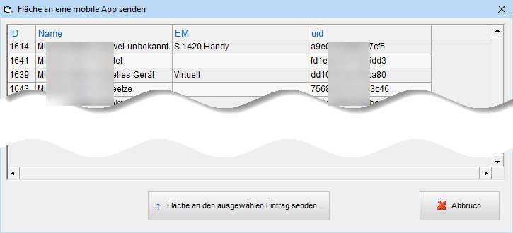 Nun das Ziel-Gerät auswählen und die Fläche wird an das Mobilgerät übertragen: