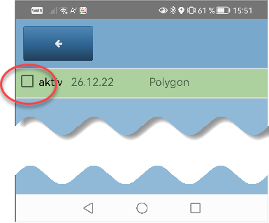 Es öffnete sich die Auswahl der Flächen, die bereits an das Mobilgerät übertragen worden sind: