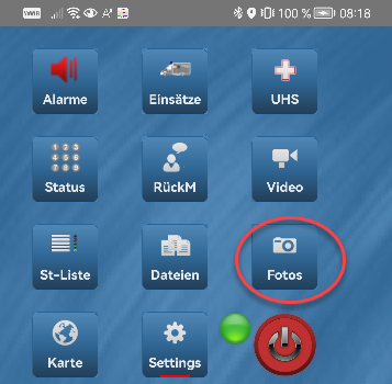 Ein Mausklick auf "Foto" öffnet die Fotoeingangsliste. Dieser Button ist immer aktiv und wird bei einem Neueingang grün: