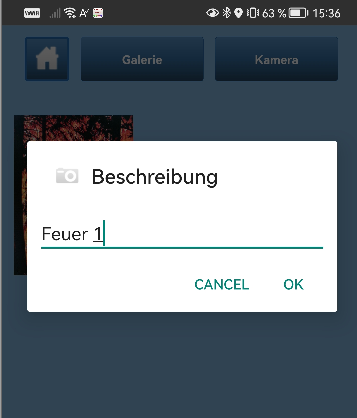 Dann können Sie ein neues Foto mit der Kamera erstellen oder ein Foto aus der Galerie auswählen und nach Eingabe einer Beschreibung versenden: