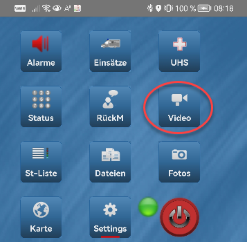 Mit Anklicken des Buttons "Übertragung starten" wird in ELS der Button "Video" grün und kann dort angeklickt werden: