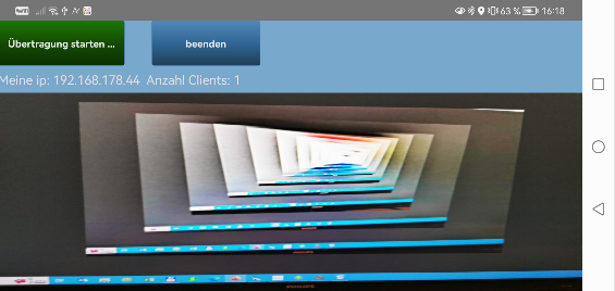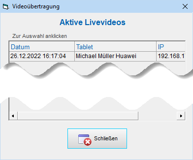 Es öfnet sich das Videomenü mit der Angabe der eigenen IP-Adresse des Mobilgerätes