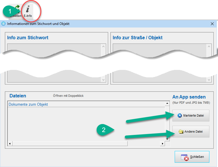 Über den Button "E-Info" öffnet sich das Dateiauswahlfenster.