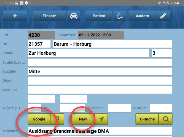 Übergabe der Einsatzkoordinaten an die Google-Navigation / Google-Maps