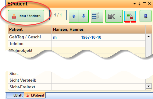Alternativ kann vom Patientenblatt aus dieser Button angeklickt werden:
