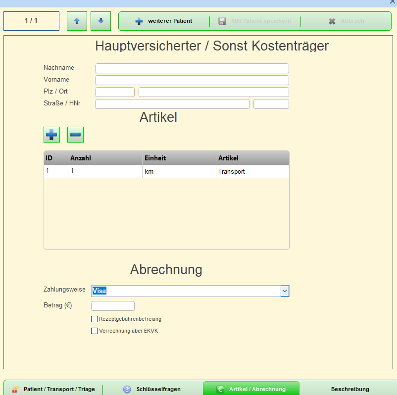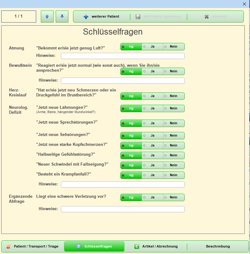 Ein Patient wird in der aktuellen ELS-Professional-Version der selben Maske erfasst, wie der Einsatz