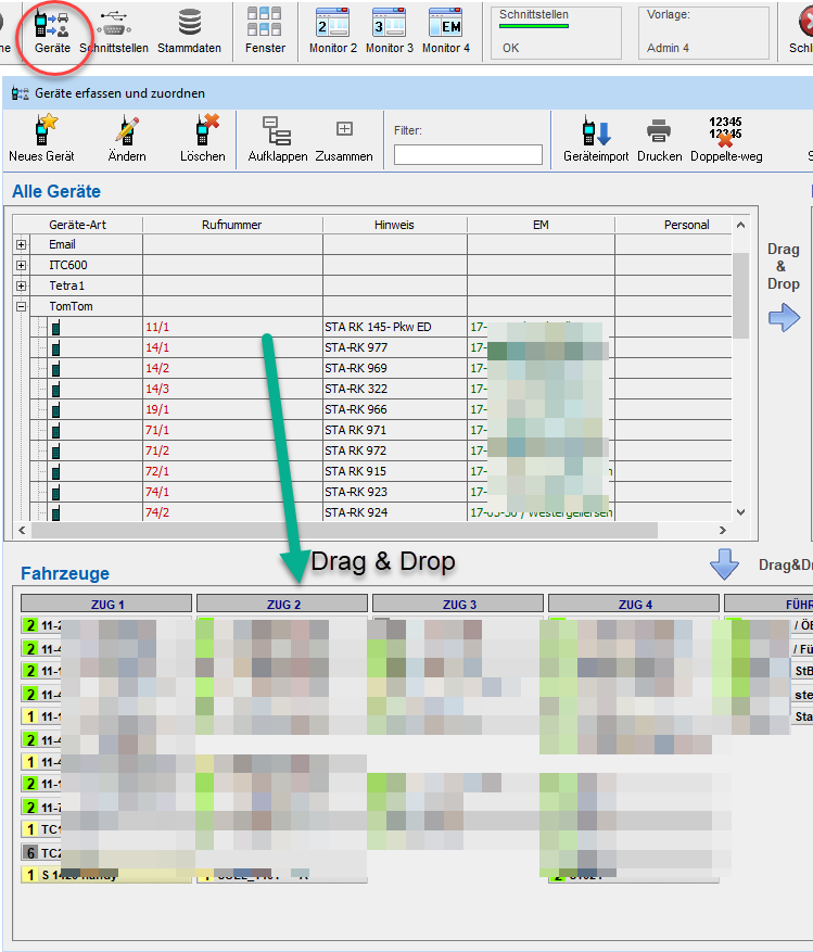 Nun können die Geräte den Einsatzmittel (Einsatzmitteleigenschaft) zugeordnet werden.